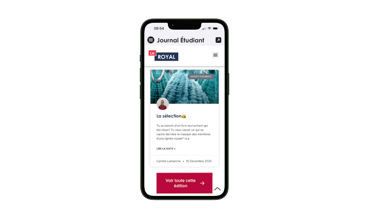 L’ajout aussi des onglets Bibliothèque, Cafétéria (menu, prix, évènements spéciaux), le journal étudiant (format numérique WordPress) et même du support technique!