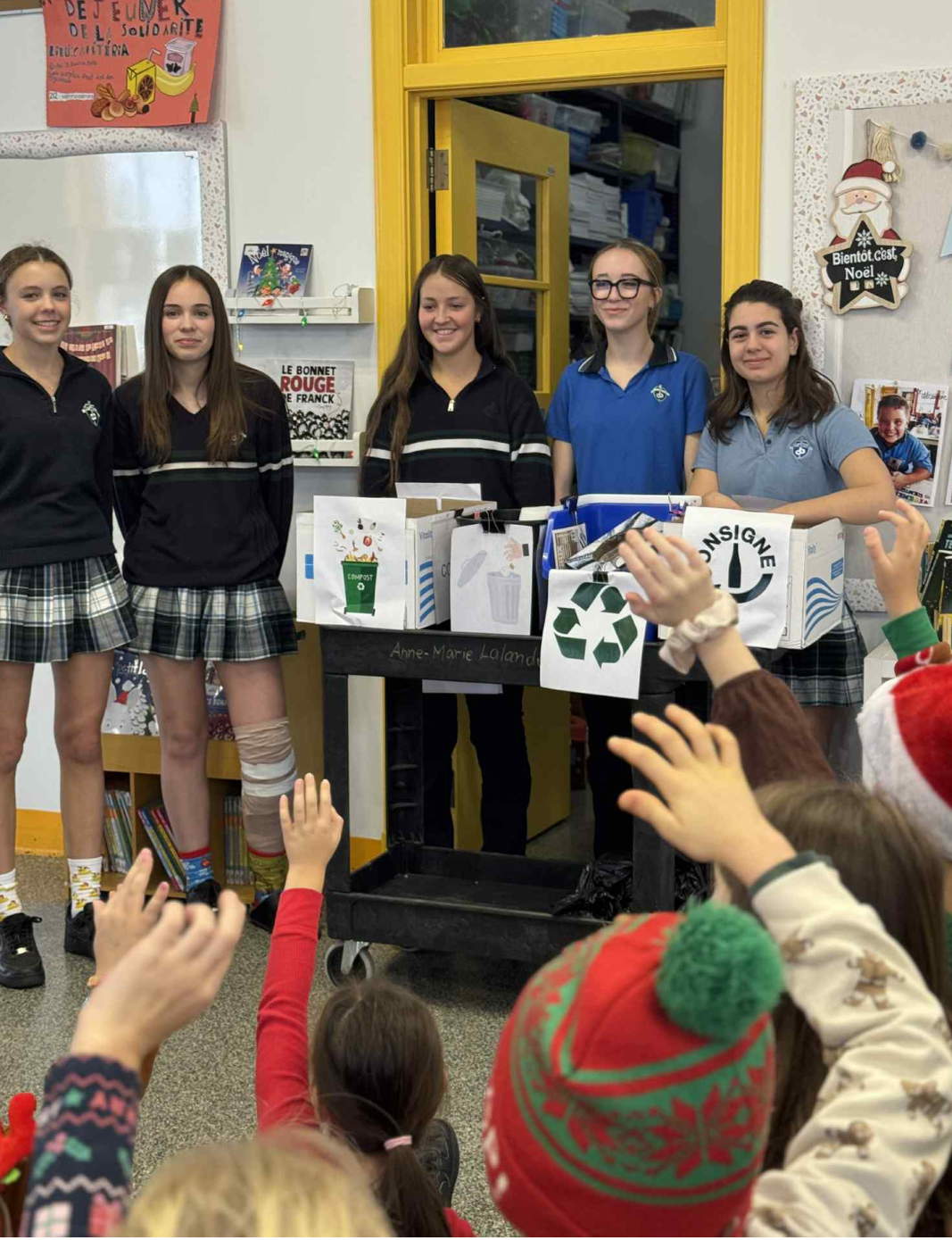 - Meilleur tri des matières résiduelles (même si ce n’est pas parfait!) réalisé par les élèves du secondaire.