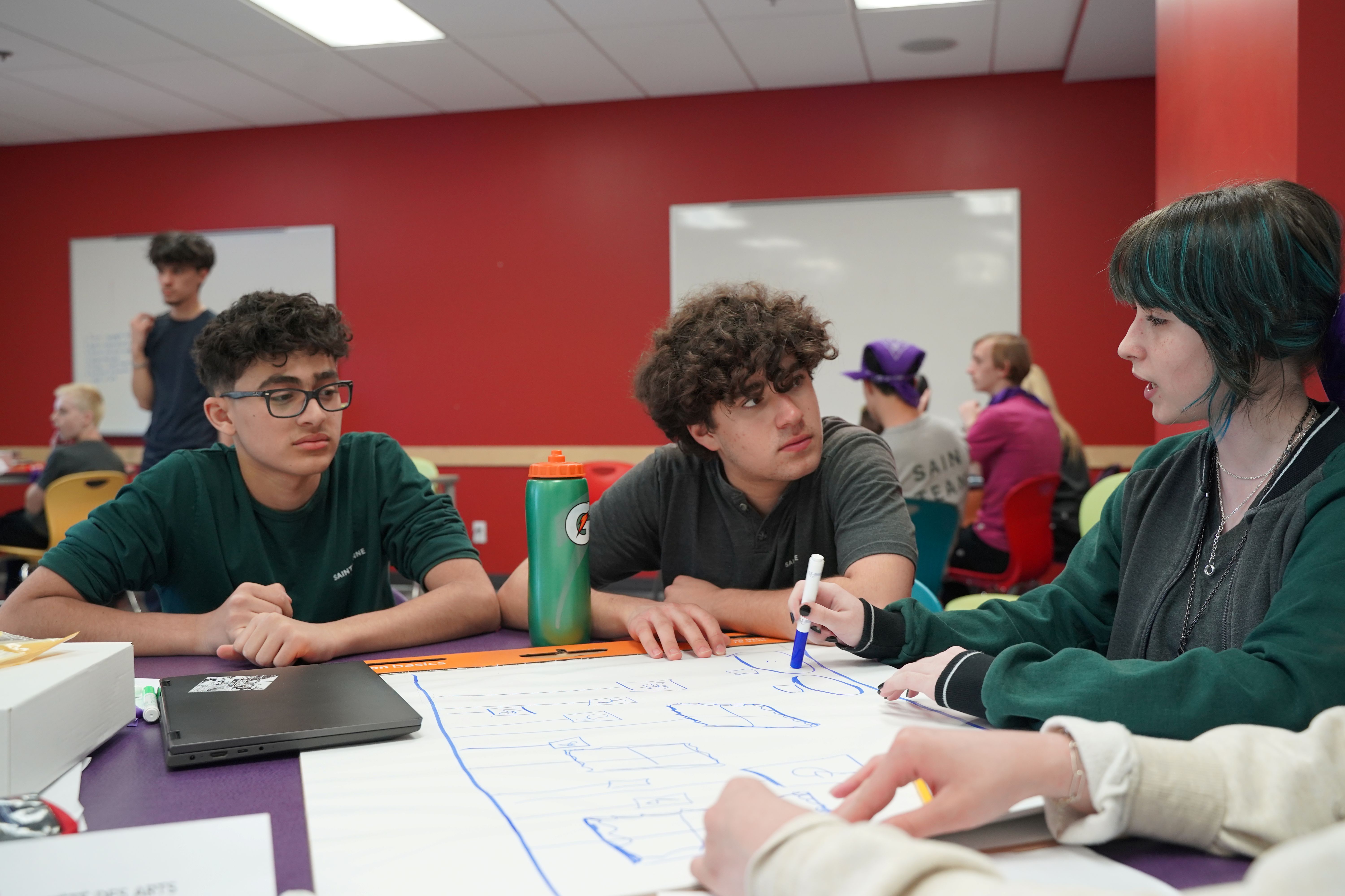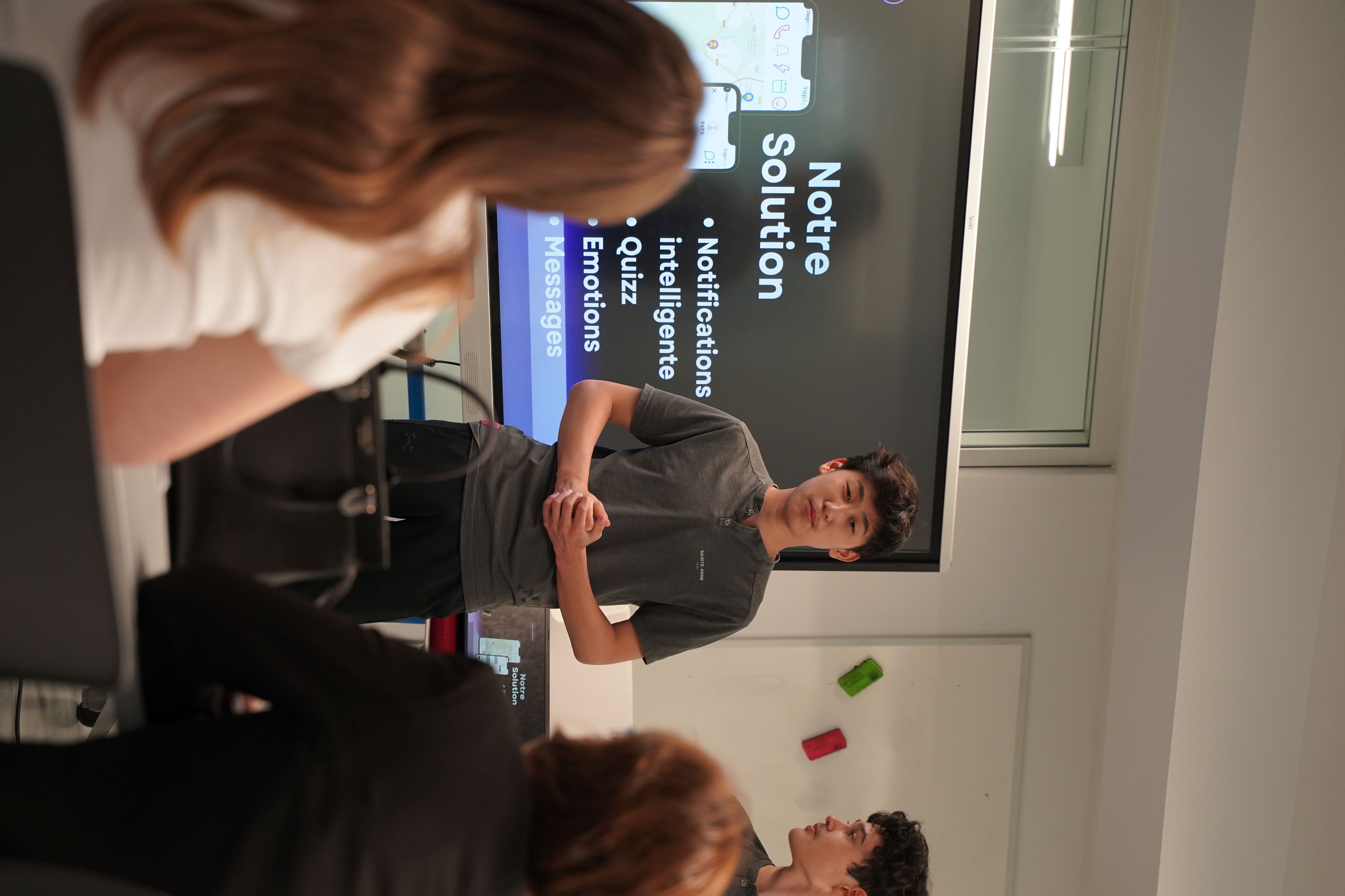 2) Jour 1 – Découvrir : lancement, dévoilement des équipes (six équipes de quatre ou cinq élèves par défi) et des défis par les partenaires, attribution des rôles, compréhension de la problématique, recherche, empathie (développement des personas) et analyse des besoins.