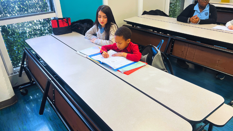 APP – Apprentissage par les pairs est un programme de tutorat individuel (1 à 1) à l’École Marie-Clarac. Chaque année, environ 50 élèves du secondaire (2e à 5e), sélectionnées pour leur bon dossier scolaire et formées pour bien accompagner, offrent bénévolement 2 heures de soutien par semaine pendant 30 semaines à des élèves du primaire (2e à 6e) ciblées en raison de difficultés d’apprentissage ou d’un manque de soutien à la maison. Le projet vise à consolider les apprentissages, à stimuler la motivation et à renforcer la confiance des plus jeunes, tout en développant chez les tutrices du secondaire l’autonomie, le leadership et l’empathie.