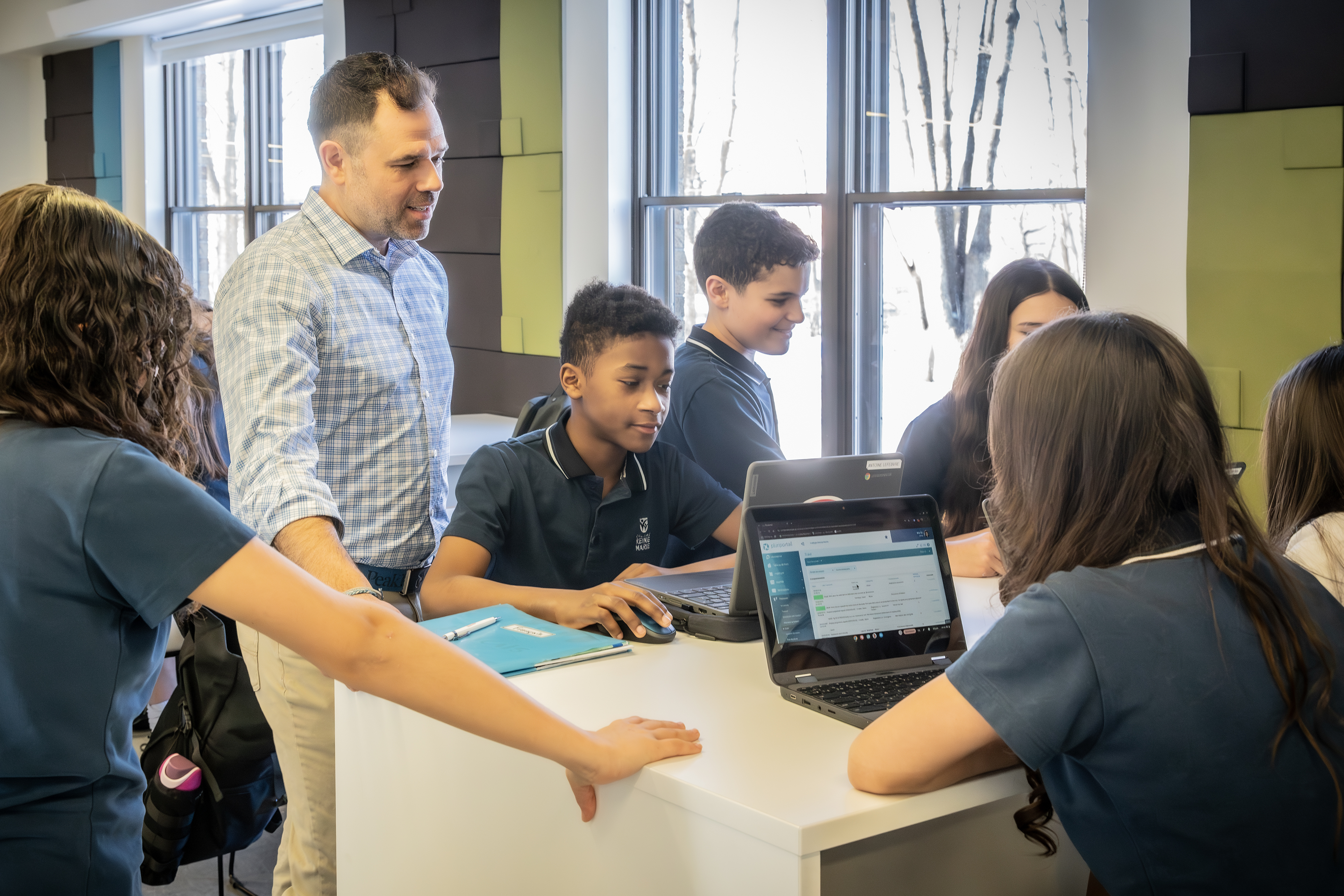 Ce projet porte sur l’implantation d’un modèle structuré de coenseignement intégrant un cours d’autonomie numérique pour tous les élèves du premier cycle du secondaire du Collège Reine-Marie, dans un contexte 1:1 Chromebook. Deux enseignants – l’enseignant responsable du numérique et l’enseignant disciplinaire – interviennent simultanément auprès d’un même groupe, leurs périodes étant jumelées à l’horaire, à raison de trois périodes par cycle de 15 jours. Cette organisation permet de développer conjointement les compétences disciplinaires et numériques dans des situations authentiques, de soutenir l’enseignement explicite et la planification conjointe. Les élèves gagnent en autonomie, en organisation et en engagement, tandis que les enseignants transforment durablement leurs pratiques collaboratives.