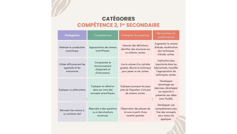 L’enseignement des sciences et technologie accorde encore une place dominante à l’accumulation de connaissances, souvent évaluée par des pourcentages qui reflètent peu le développement réel des compétences scientifiques. Cette approche met insuffisamment l’accent sur d’autres compétences scientifiques comme la capacité à expliquer un phénomène ou à réinvestir les concepts dans un contexte authentique. De plus, la pondération accorde généralement une importance disproportionnée au vocabulaire, au détriment d’autres compétences essentielles. Le projet vise donc à rééquilibrer cette dynamique en proposant un système de cotes et de catégories qui permet de dégager un portrait clair du développement de l’élève et d’offrir une rétroaction précise et utile.