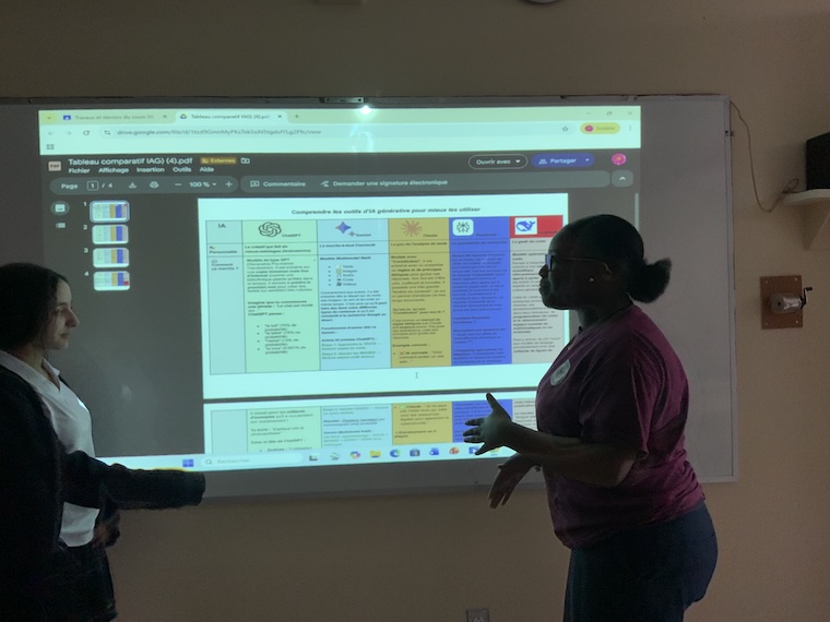 Chez les enseignants, l'intégration de l'IA dans les pratiques pédagogiques progresse à des rythmes variés, témoignant d'une appropriation graduelle. Ils bénéficient d'une formation continue assurée par la conseillère pédagogique en IA, qui effectue la veille technologique, conçoit des formations sur mesure et identifie les outils répondant aux besoins des différentes disciplines.