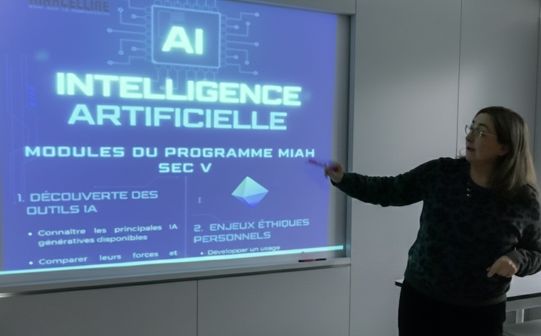 MIAH est un programme unique au Québec qui se distingue par son approche éthique-centrée. Là où d'autres initiatives enseignent l'IA comme un outil technique, MIAH souhaite offrir aux élèves des bases solides pour analyser, comprendre et questionner ses enjeux. L'innovation réside dans la progression pédagogique : des fondements (biais, hallucinations, justesse de l'information) vers des réflexions complexes (hypertrucages, désinformation, impact environnemental). Le cours, par sa structure et par l’intégration dans la grille-horaire d’une période dédiée, garantit un apprentissage approfondi.