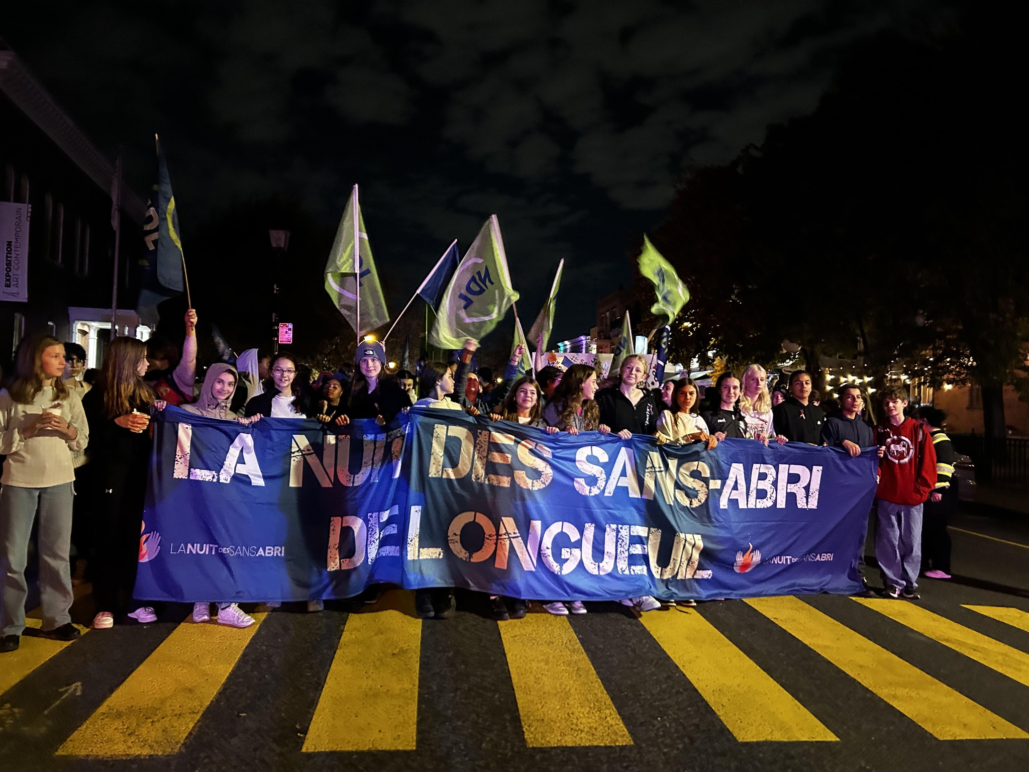 En octobre de l’année suivante, des élèves participent à la Nuit des sans-abri de Longueuil.