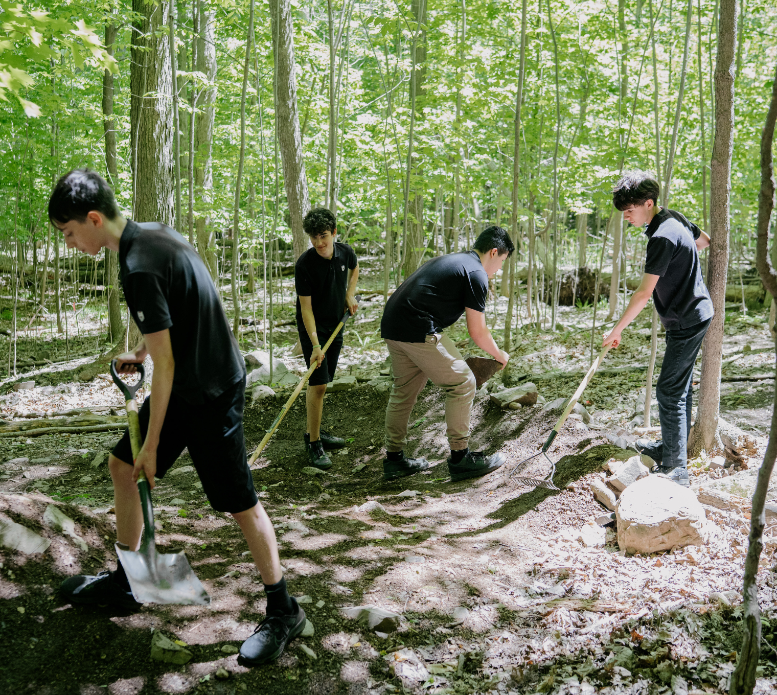 Le Collège est situé dans un environnement naturel exceptionnel, à même le Mont Saint-Bruno. De plus, il a récemment fait l’acquisition de près d’un million de pieds carrés autour de son terrain initial, l’agrandissant ainsi substantiellement. Ce dernier est immense et magnifique, mais son utilisation était sous-optimale à l’époque, ce qui n’encourageait pas les élèves à sortir et à voir leur environnement scolaire de manière différente dans le cadre de leurs cours et lors de leurs temps libres.